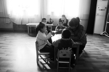12月2日,在育红聋儿学校,孩子们和老师在做交流。 本报记者 马志勇 摄