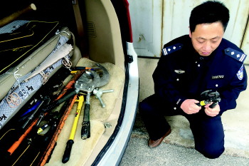 盗割电缆团伙的作案工具。 殷萍 摄
