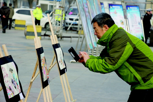 这次宣传活动的一大亮点,便是现场展出的60幅以“抵制交通违法 引领文明出行”为主题儿童书画作品。滨州市“交通银行”杯中小学生书画大赛由滨州市文明办、共青团滨州市委、滨州市公安局、市教育局、齐鲁晚报·今日滨州共同主办。作品都是孩子们以易懂、易记的宣传警句、交通安全温馨提示语和警民共创和谐社会等内容为题材创作的。在第四届“全国交通安全日”活动现场展示宣传,更加警示人们对交通安全出行的责任意识。