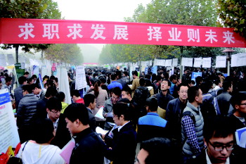 每年的高校毕业生招聘会现场,都会吸引众多的求职者。(资料片)
