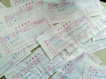 阳光花园小区物业工作人员近期收到的部分业主暖气报修单。 本报见习记者 樊舒瑜 摄