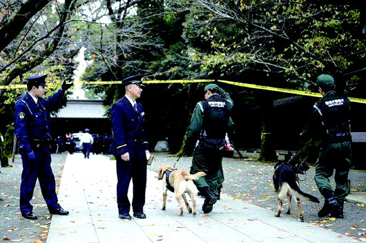11月23日上午10时左右,靖国神社南门附近男厕所发生爆炸,天花板被炸出洞,墙面受损,但无人受伤。日本共同社3日凌晨援引东京警视厅公安部消息人士的话报道,调查人员查看监控录像发现,爆炸发生前30分钟左右,一名30岁左右的男子戴眼镜、穿深色衣服,提着袋子、背着背包,出现在男厕所附近,随后走向厕所方向。过了一会儿,他从靖国神社南门离开,手上没有袋子,走向九段下地铁站方向,但没有坐地铁,而是步行前往千代田区一家旅馆。调查发现,这名男子11月中旬入境,警方对他居住的旅馆房间进行了搜查,不过这名男子已于案发后回到韩国。警方在爆炸现场发现的残余爆炸装置上发现韩文,并且判断这是一个简易定时爆炸装置。