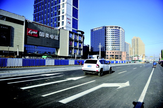 3日早上5时开始,纬十二路(经十路至无影山路)全线放开快车道通行,在经十路与经七路之间,路中间的绿化带和BRT站台预留口正在施工,路两侧的人防工程也围着围挡,所以只开放了中间两个快车道。 本报记者 王媛 摄