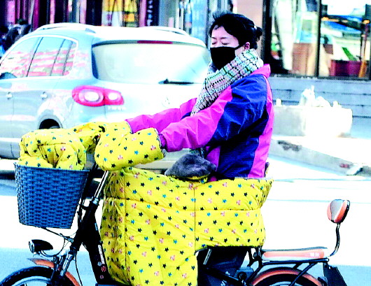 3日,济南街头大风呼啸,落叶纷飞,行人睁不开眼睛。大风带来的好处是:雾霾走了! 本报记者 周青先 摄