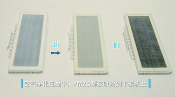 实验结论:PM2.5被彻底吸附到空调净化模块上