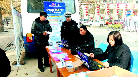 12月2日是第四个全国交通安全日,今年的主题是“拒绝危险驾驶,安全文明出行”。当日上午,章丘市公安局交警大队在百脉泉广场开展122宣传活动,现场办理车管业务,并宣传黄标车对环境的危害。