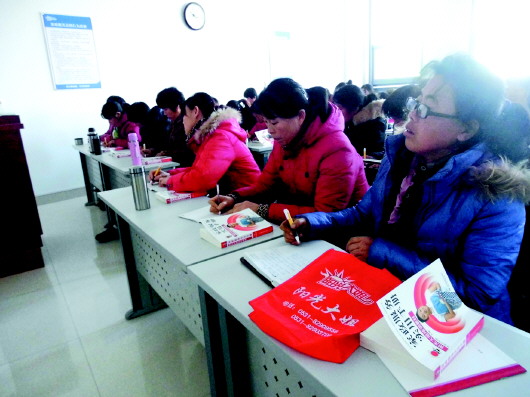 ◥“阳光大姐”培训现场,农民学员非常认真。
