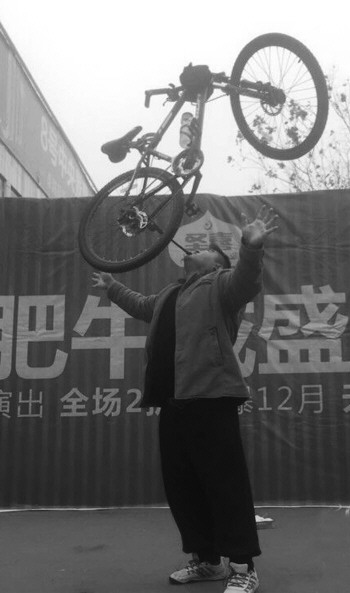 铁下巴孙朝阳压轴出场,与顾客简单做了互动就开始顶起桌子,一片掌声响起。铁下巴感觉不过瘾,于是从台下借了一辆自行车顶了起来!由于这辆车子没有后座,孙朝阳说比当年央视春晚上表演还难!最后铁下巴竟然把台下一位朋友请到台上放到梯子上顶了起来,大家连声叫好。