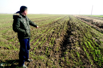 日前,即墨移风店镇店东村大片麦田被人莫名毁坏,给农户造成不少损失。“我家麦地一共被人用拖拉机翻耕过两次,部分麦苗被毁坏,损失不小。”3日,在即墨移风店镇店东村一处麦田,村民黄先生指着被毁坏的麦地说,今年9月,麦苗刚发芽时,他家的麦田就被人用拖拉机翻耕了几条深深的垄沟。为减少损失,他对麦田进行了补种。可是到了10月底,麦田再次被人为翻耕。记者看到,被毁坏的麦田里有几条20多厘米深的垄沟,垄沟处的麦苗已全被毁坏,十分可惜。据了解,店东村有20多户村民家的50多亩麦田被人为毁坏。