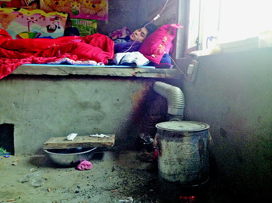 孙士强所躺的炕就是家人出事的地方,罪魁祸首是地上的煤炉。