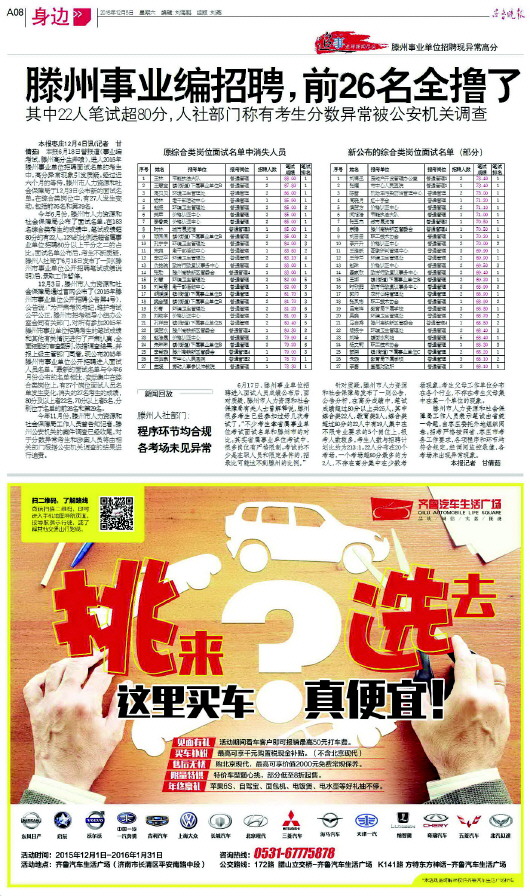 齐鲁晚报12月5日关于滕州事业编考试的报道。