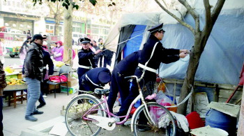 为了减少与流动商贩业主的摩擦,7日,城管部门已经向业户下发通知,对该区域的占道经营进行规范化治理。8日上午,城管部门的相关负责人来到现场,召集业主进行现场劝导。“大部分业户都很不容易,有的是下岗职工,每天早出晚归,因此考虑到大家的利益以及城市管理的规定,我们希望能够劝导业户进入华瑞园小区内进行经营。”李冰介绍说,城管部门将与华瑞园物业进行协调,将业户疏导进华瑞园南门,并在该社区的便民市场寻找新摊位,对其进行安置。“此外,附近还有其他的便民市场,我们也可以帮助业户在那里进行安置。对于本身属于下岗等特殊情况的人员,我们也会协调帮助其免除相应费用。”
