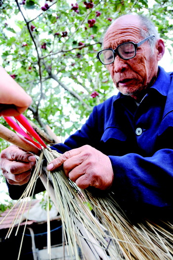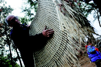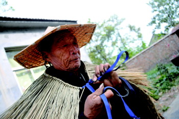 “以前条件差,没有雨衣,村民都靠蓑衣遮风避雨。”徐桂森说,制作蓑衣的原料是从村边河滩里收割的茅草。老人介绍,原来村子里很多人都在做蓑衣,但是现在只剩下他一个。