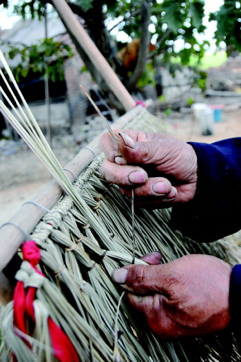茅草经蓑衣匠巧手缝纫而成“衣”。