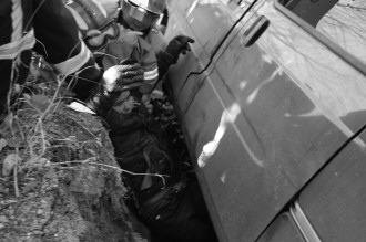 记者从枣庄市消防支队了解到,4日中午10点多时有群众拨打电话报警,称滕州市滕平路南徐加油站对面发生一起交通事故,有一个人被困住了。随后,滕州消防大队官兵赶赴现场。