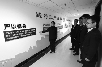 2015年12月7日,工行枣庄分行设计制作了“三严三实”专题教育文化墙,加强员工教育,坚定理想信念,推进作风转变。 (颜海龙)