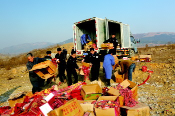 12月8日上午,岚山公安分局会同有关部门,对收缴的非法烟花爆竹进行了集中公开销毁。今年以来,岚山区公安机关共查获非法烟花爆竹以及过期烟花爆竹10万余头、礼花1000余件以及其他易爆物一箱。