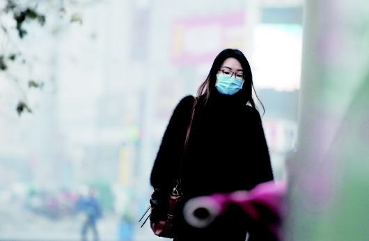 10日,济南遭遇近日最严重的雾霾,市区很多市民戴上了口罩。 本报记者 周青先 摄