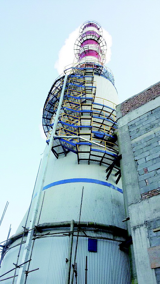 一家热电企业为改造新建的脱硫塔和烟囱。 刘德峰 摄