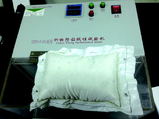 该工作人员介绍,根据羽绒服装的国家标准GB/T14272-2011规定,对羽绒服钻绒的检测是指面料不能钻绒,对缝线处钻绒并没有规定。根据该规定,将羽绒服布料和填充物制成样品,然后将样品放在机器上转动2700轮,只要突出织物表面2mm的填充物都将被计数在内。“根据填充物的重量和产品质量标准,以及突出的填充物数量来判定是否合格。多于50根的肯定是不合格的。”该工作人员也坦言,对该项检测,至今几乎没有不合格的。