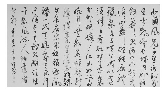 秦维东的书法是率真、自然的,所以能做到天趣横生,虽变化起伏而意蕴连绵;秦维东的书法是开朗、明快的,因而能做到激情四射,有畅达之情而无荒率之弊。这一切,说明他已成功穿越艺术瓶颈,探寻到了更为广阔的发展空间。