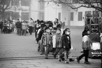 12月10日,德州实验小学的很多学生戴着口罩走出校园,放学回家。 本报记者 马志勇 摄