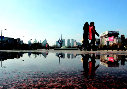 11日济南碧空如洗,泉城广场游人增多,只可惜赶走雾霾的还是大风。13日起雾霾将再度来袭,济南今年首次提升预警级别,由黄色变为橙色。 本报记者 周青先 实习生 刘海天 摄