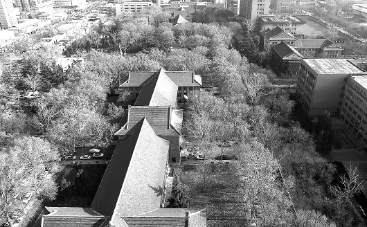 11日,借助大风,济南的雾霾天一夜变蓝。山师校园里景色怡人。