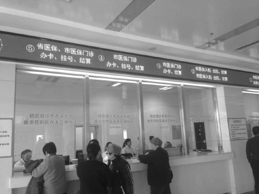 在一家大医院的医保结算窗口,市民正在结账报销。(资料片) 本报记者 刘志浩 摄