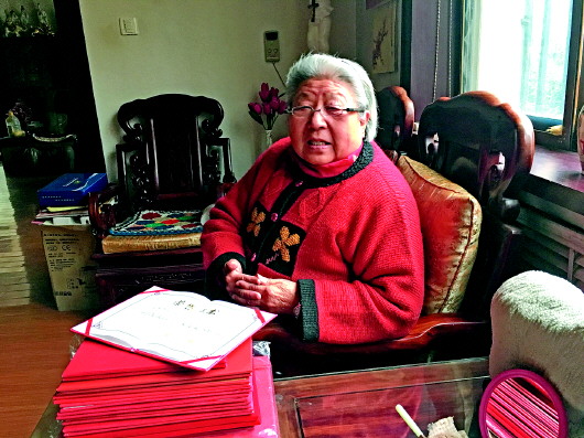 热心公益的王秀芳老人收获了好多荣誉证书。