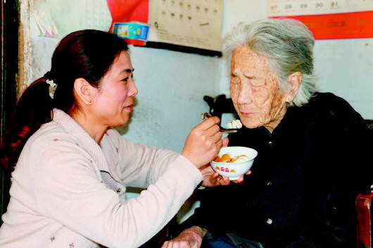 青岛即墨田横镇黄官屯村妇女孙春暖,21年悉心照顾丈夫的外舅公和外舅婆。97岁的外舅婆双目失明,她就一勺一勺地喂饭,而外舅公都107岁了,她每日为二老做饭洗涮,端屎端尿。