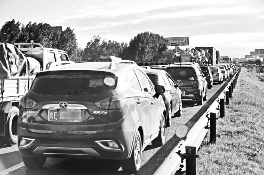 由于济青高速车流量大,且道路较窄,通行能力有限,拥堵便时常发生。(资料片)