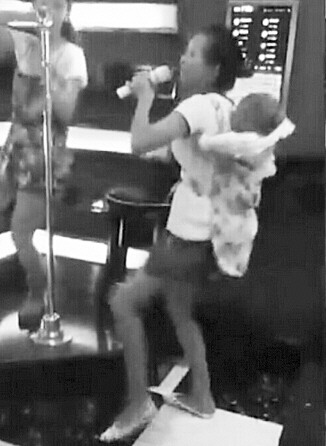 身背孩子在KTV唱《小苹果》这女子也太嗨了