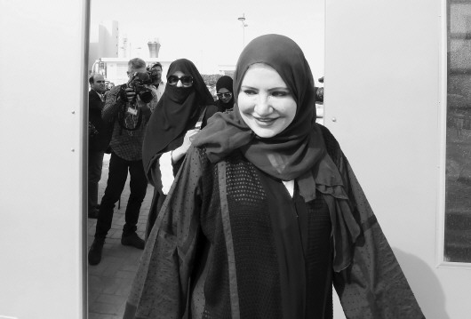 ◤12日,在沙特阿拉伯首都利雅得,女性选民到达一处投票站准备投票。