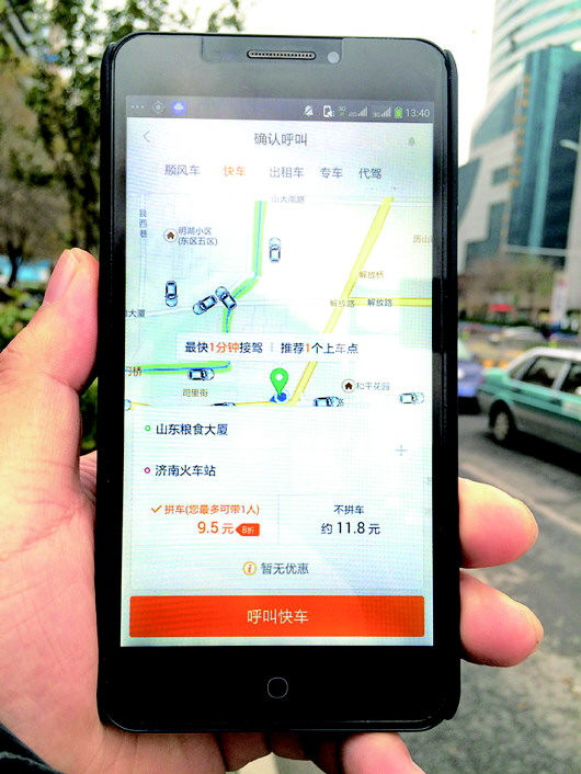 不同于处于法律灰色地带的专车,拼车这一绿色出行方式很受市民欢迎。11月底,滴滴快车在济南试运行了拼车功能,但综合这半个多月的运行情况来看,不少体验者反映,拼车需要绕路,非常耽误时间,而且“上车后还要看司机脸色,拼不成感觉欠了司机两万块钱”。