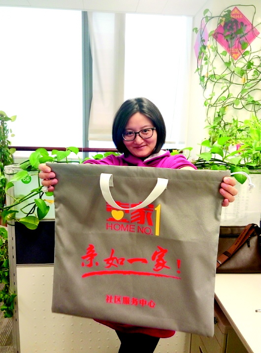 林女士展示手中的壹家袋。 本报记者 孙业文 摄