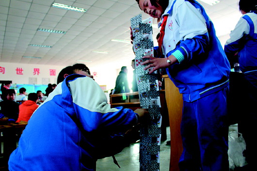 11日,市中区第三届城郊学校科技节在党家中学启动。本届科技节的主题是“快乐童年 创意无限”。启动仪式上,各校师生展示了自己制作的梦想飞机、奔月火箭、智慧奔跑、扑克牌叠高等科技创新项目。 本报记者 李飞 摄