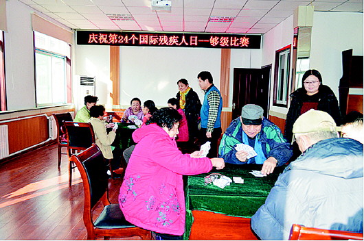 本报讯(记者 张九龙 通讯员裘文岚) 为庆祝第二十四个“国际残疾人日”,解放路街道办事处残联于12月4日在青龙街社区举办了残疾人够级比赛。借此活跃基层残联组织,丰富残疾朋友的业余文化生活,增进残疾朋友之间的交流和沟通。
