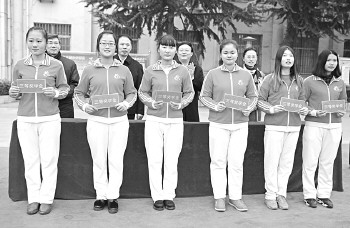 济宁卫校学生领取奖学金。