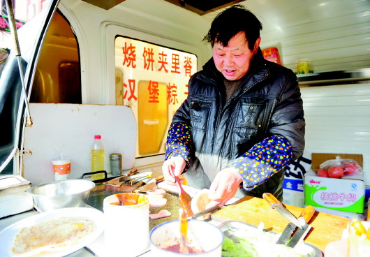 老伍每天早晨3点半就得起床,洗菜炒土豆丝,忙活大半天后,下午去匡山批发市场批菜,晚上再忙活到10点多。“现在年纪大了,也不知道什么时候是个头,如果村子真的拆迁改造,我们正好可以休息休息了。”老伍有点自嘲地自我安慰。
