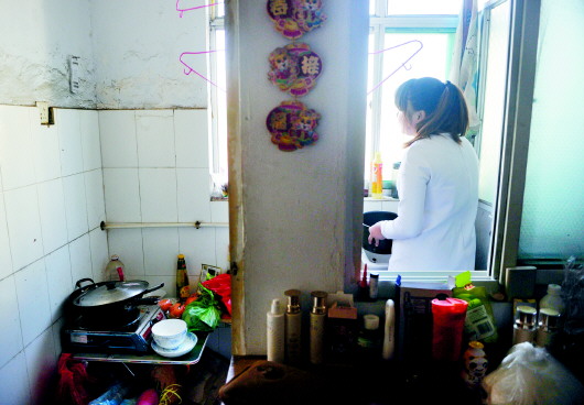 韦敬和老公老家都是济宁汶上,他们从威海一家学校毕业后,今年春节后来济南工作,8月份住进了后龙窝庄。“我们去年结的婚,目前这个10多平米的房子也算是我们的婚房了。”韦敬带记者来到她的小窝:一张床、两张桌子、一个衣柜、有空调、阳台上做饭用的煤气罐,还有卫生间。“最重要的是朝阳,这算条件好的了,每月租金350块钱。”韦敬说,这里的电费贵,1块3一度电,加上上网费等每个月的费用得五六百元。