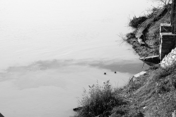 12月15日,在古运河东风路附近的一处排水口处,不断有深黑色污水流入,显得格外扎眼。                             本报记者 马志勇 摄
