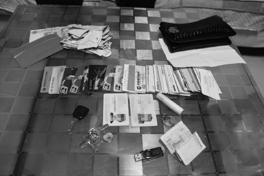在李先生的家里,记者发现,钱包里有现金一百多元,一枚戒指、一个U盘、一张存折、七把钥匙、十四张银行卡,还有失主的一寸照片和身份证,上面显示的名字为郭青青,东营市利津县人。除此之外,还有其他会员卡数十张以及发票数张。
