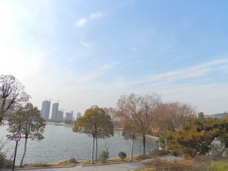 自14日开始,枣庄再中“霾”伏。15日,虽然天看起来挺蓝,但实际空气质量仍不佳。15日下午,枣庄市重污染天气应急指挥部发布重污染天气黄色预警,启动III级应急响应。据悉,这已是本月第二次发布重污染天气黄色预警。图为在新城凤鸣湖拍到的蓝天景色。 本报记者 韩微 摄影报道
