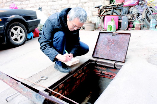 上午9点半左右,在二环东路某单位宿舍内,宫延龄弓下腰,把所里发的金属钩子伸进户表井盖的孔里,打开了这个井。他蹲下身,用自备的一把木尺子,将户表上的污垢刮了刮,露出数字,他拿出抄表卡片,分别记下井里6个户表上的数字。