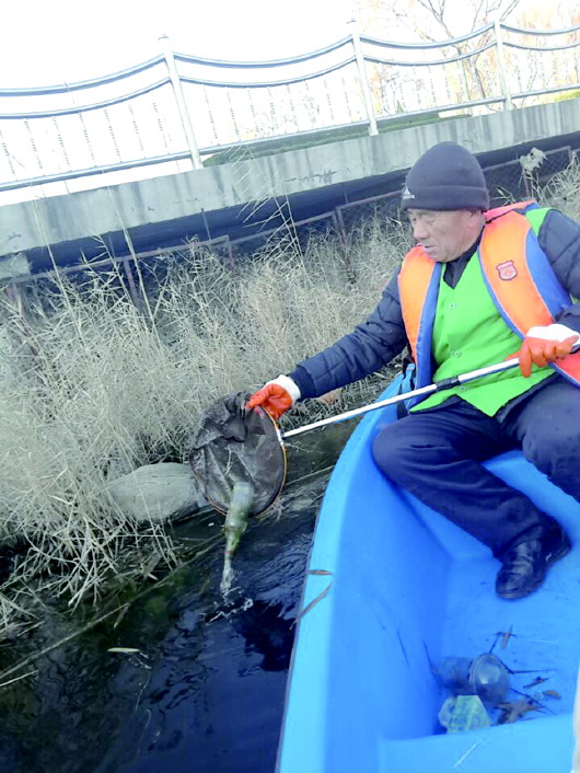 对于69岁的何学良来说,一艘小船、一把捞网、一个捡拾器,是他所有的家当。人民公园44700平方米的水域,他和同事每次打捞上千斤垃圾。天冷了,打捞工作难度加大,原本两三个小时的工作因风大得需要一天。眼见着湖面要结冰,他焦急地说:“天再冷,也得抓紧干,垃圾冻在水里就难办了。”