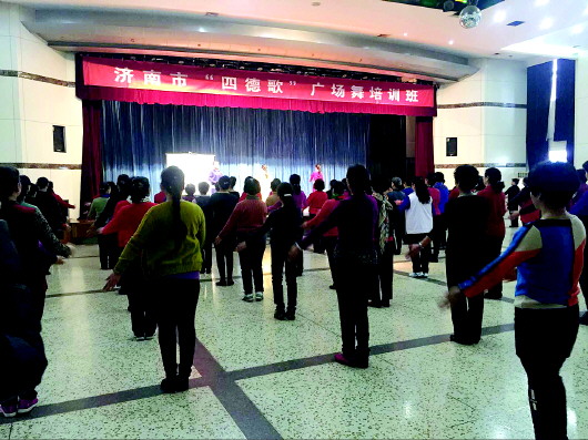 本报讯(记者 崔岩) 为弘扬社会主义核心价值观,深入推进四德工程建设,提高全民道德素质和社会文明程度,让“社会公德、职业道德、个人品德、家庭美德”的理念更加深入民心,展现现代女性积极向上的精神风貌和健康动感的靓丽风采,传递正能量,12月1日上午,省、市妇联举办了“四德歌”广场健身舞骨干培训班。