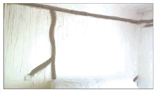图片:丁先生家的房顶和墙壁上出现了多处裂缝。