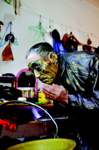为了扮好铜人,聂观鸣对于所用的颜料十分讲究。