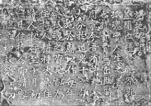 章丘民间习俗,对死者的悼念活动主要有“五祭”。即清明(寒食)扫墓的春祭,麦收后五月的夏祭,秋收后十月一的秋祭,腊月三十“请老祖宗到家”的冬祭。除“四季祭”之外,还有七月十五的“鬼节”,也要去“上坟”祭祀。在此简单介绍一下夏祭与秋祭。五月麦收后,在“先祖宗后自己”的朴素美德传统思想指导下,后人首先要用新麦面粉做成馒头或水饺,在阴历五月麦收后的某一天到坟上祭祀,以示对祖先的孝与敬,同时也祈祷祖先保佑庇护来年取得更大丰收。所以,在章丘民间夏祭也叫上“过麦坟”。那么秋祭呢,自然也是让阴间世界享受到秋天丰收的果实了。阴历十月一正是秋收结束之后的农闲时节,官庄人选择这个日子,随风就俗对孤魂进行祭祀,也就不难理解了。李文鹍率子孙立碑的目的更明确,石碑就像一块永恒的契约,“以示后来者使知地亩之由来,且便於遵行云尔。”李文鹍施地善于庙,“庙”利用土地的收获祭祀善于阴间的孤魂,此举充分体现了一个“善”字,地名叫“善庙地”也就更不难理解了。